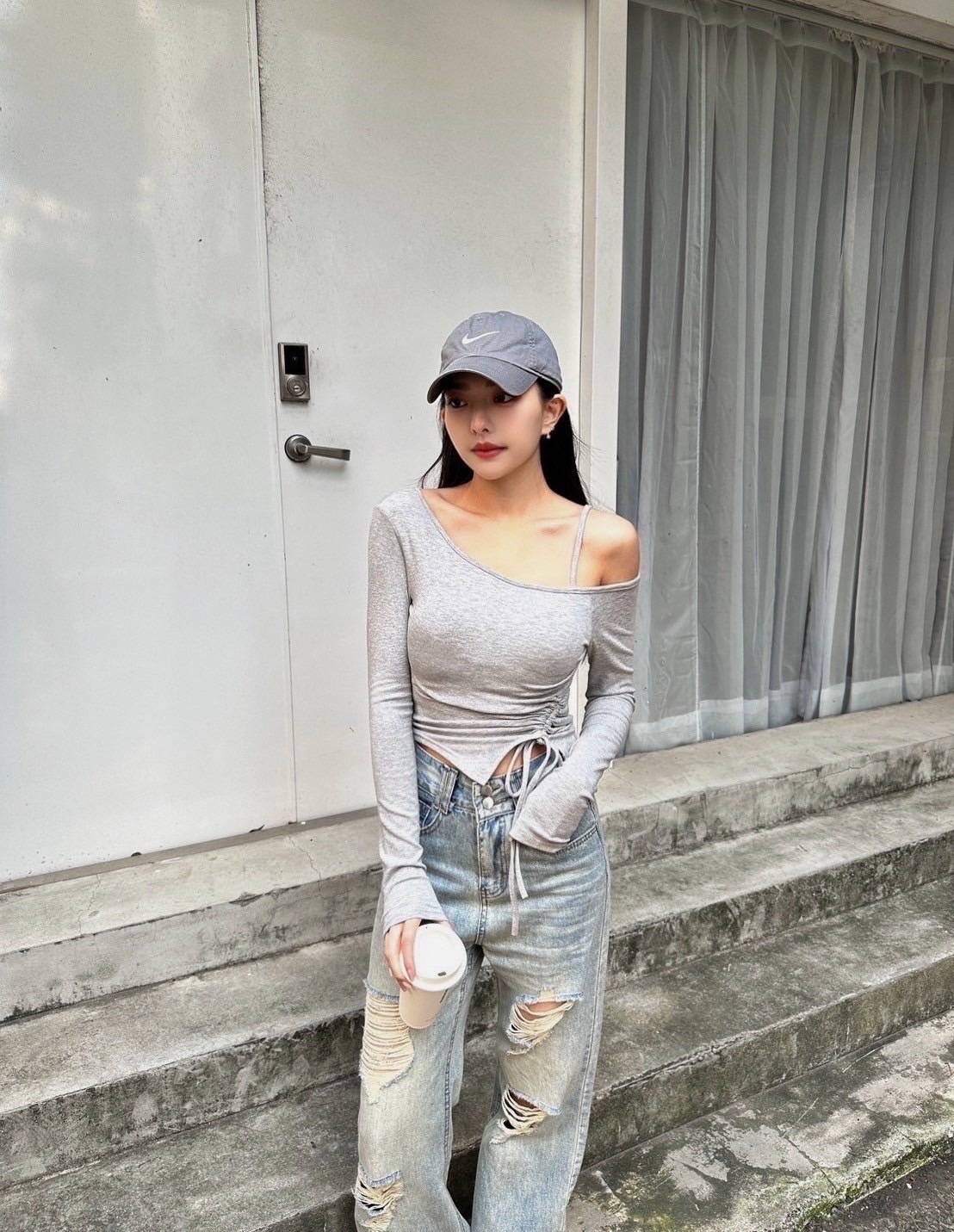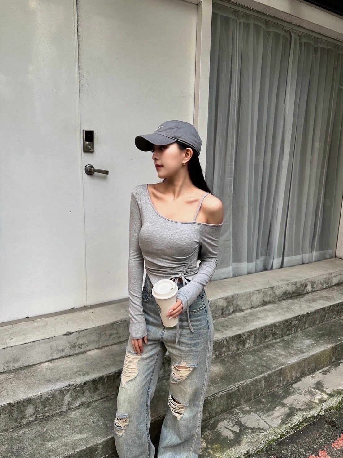 單肩不規則抓皺衣 四色