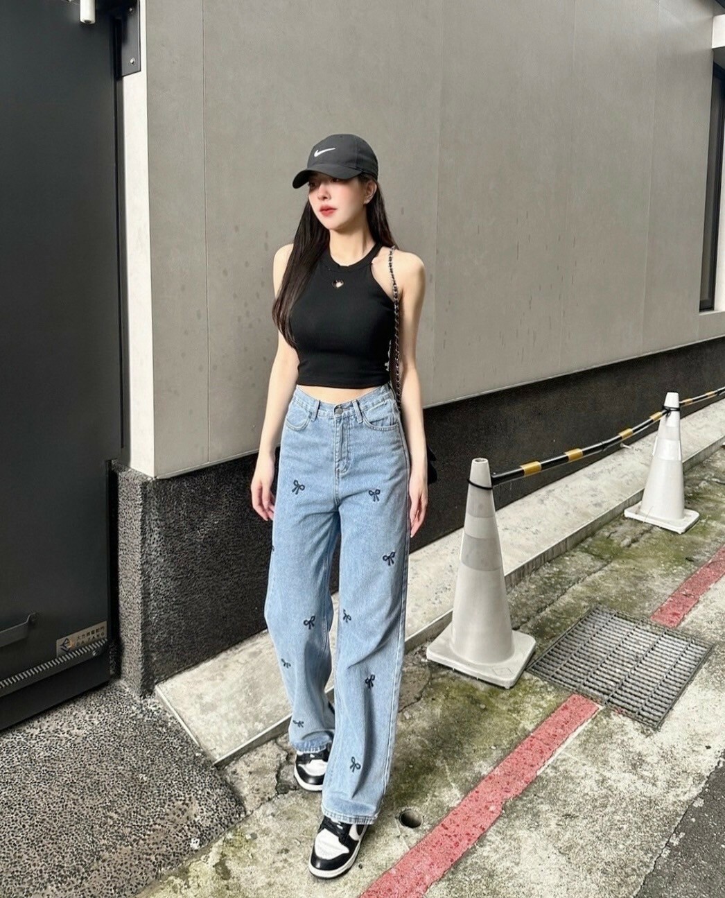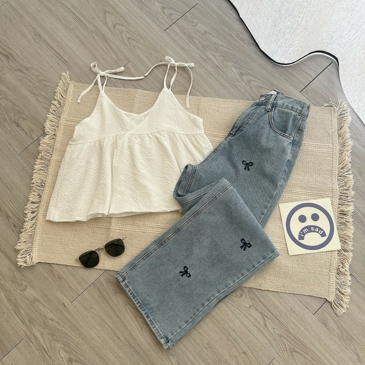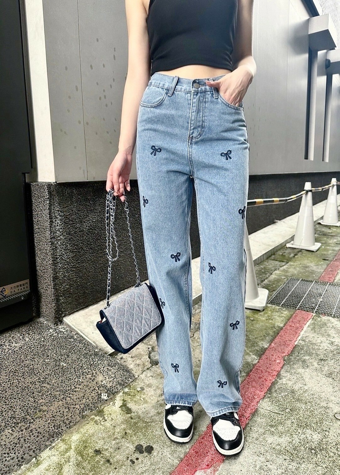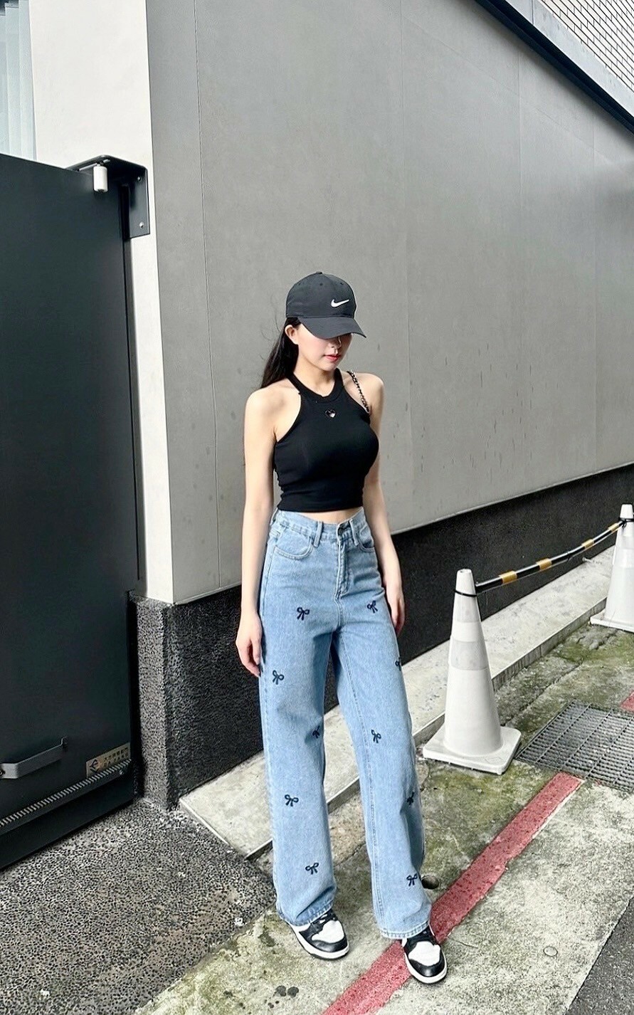 小眾蝴蝶結刺繡寬褲
