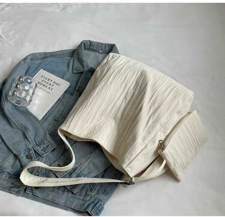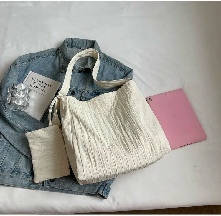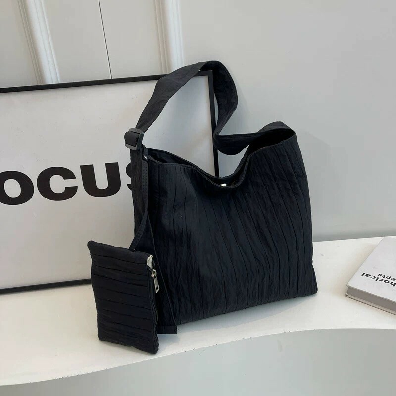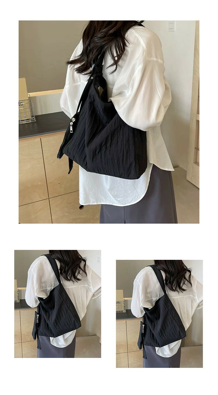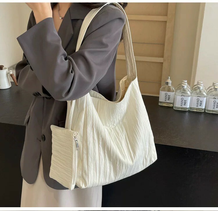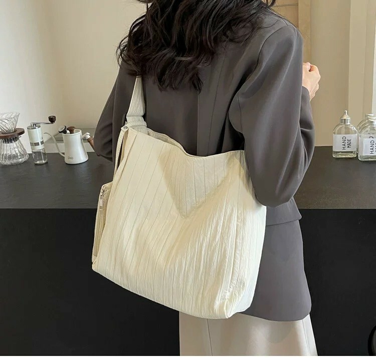大容量紋路托特包 黑/米白