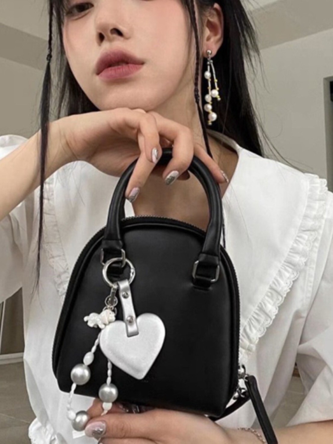 小眾設計斜跨包 銀/黑