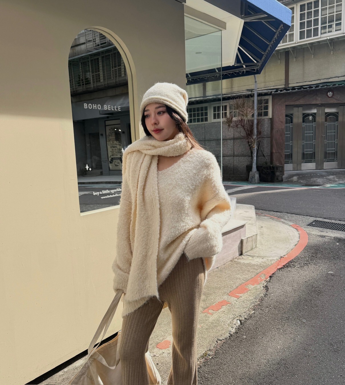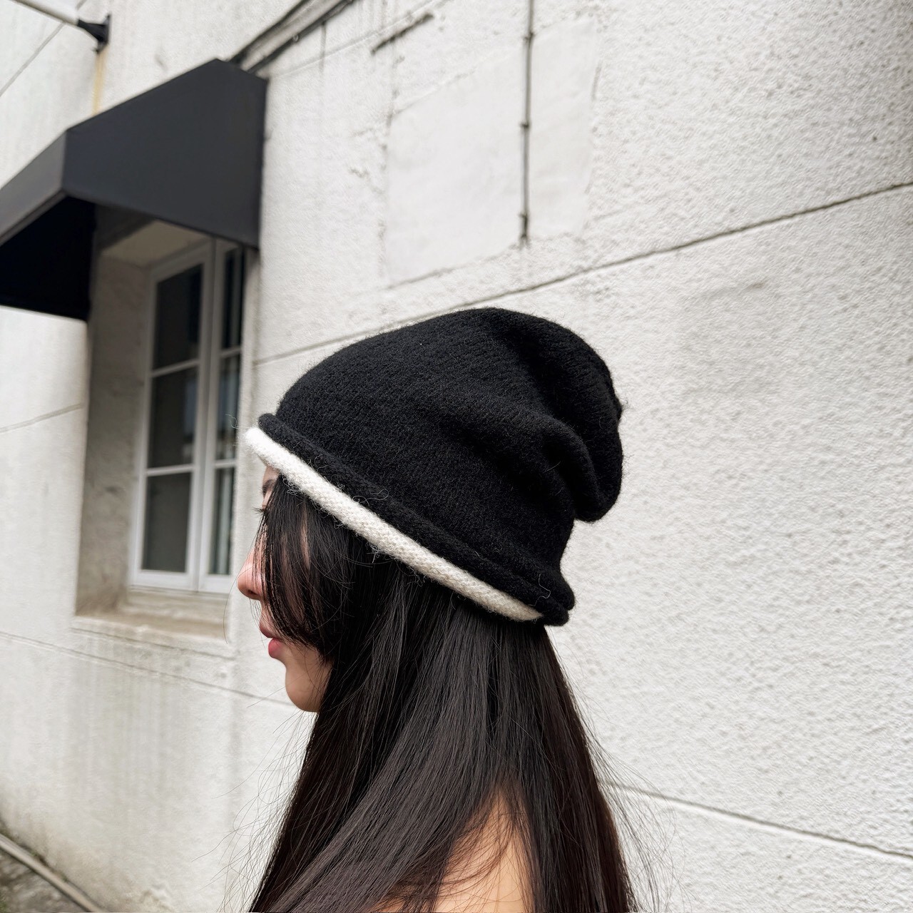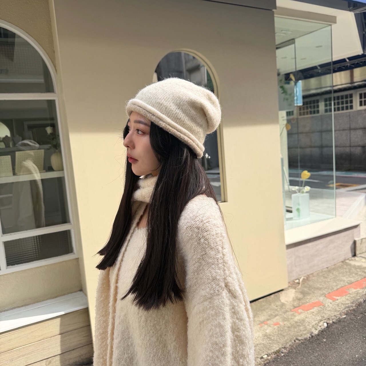 拼色捲邊趙露思款毛帽 杏/黑