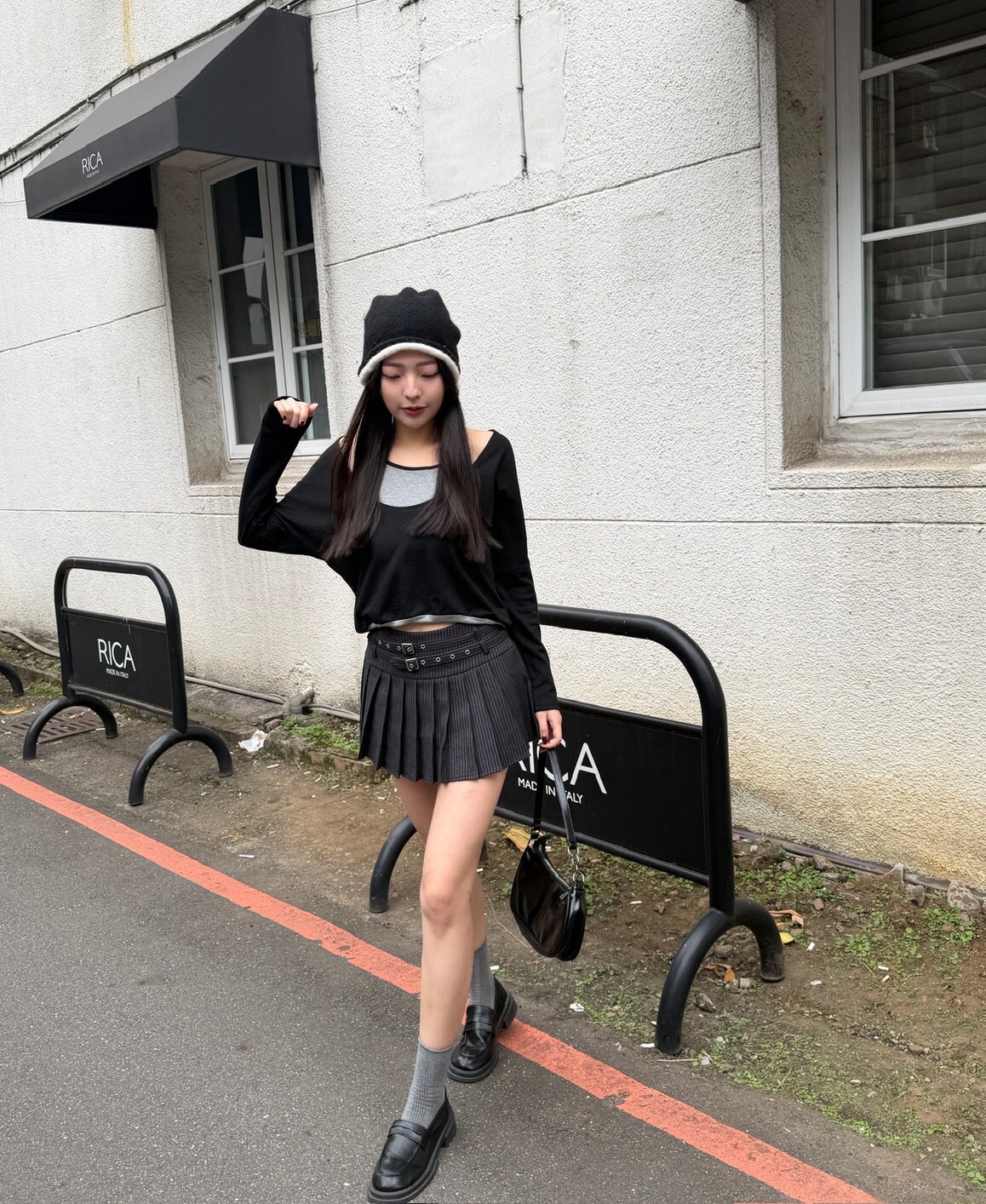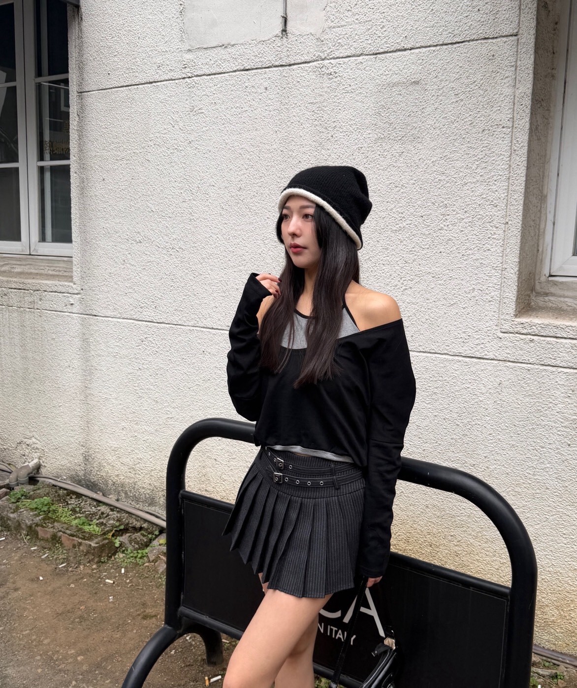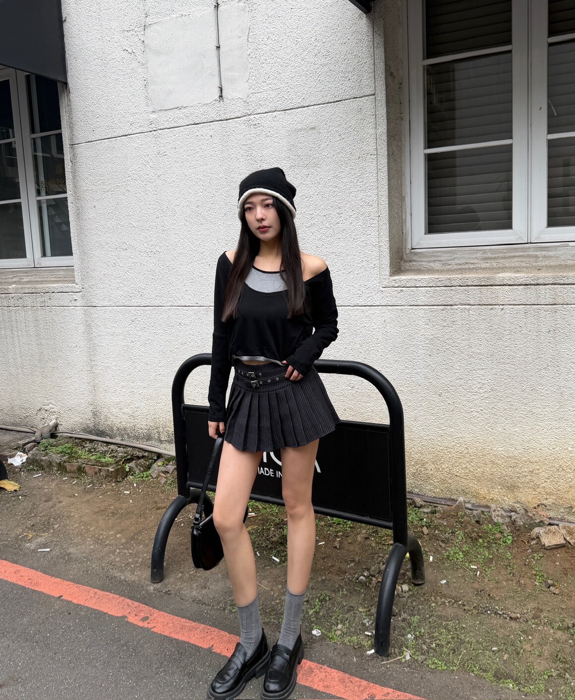 拼色捲邊趙露思款毛帽 杏/黑