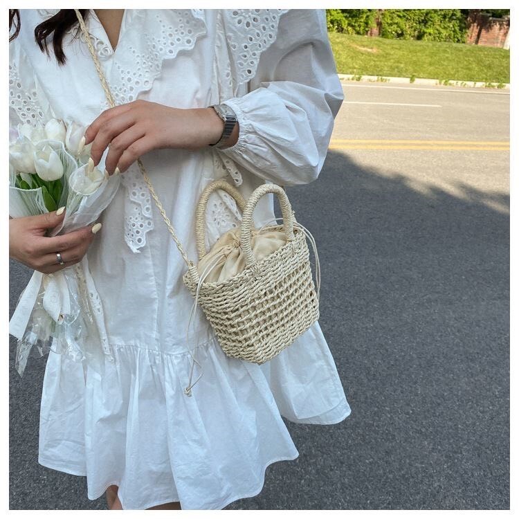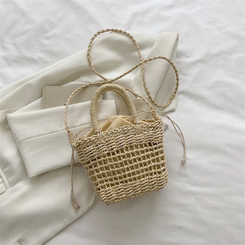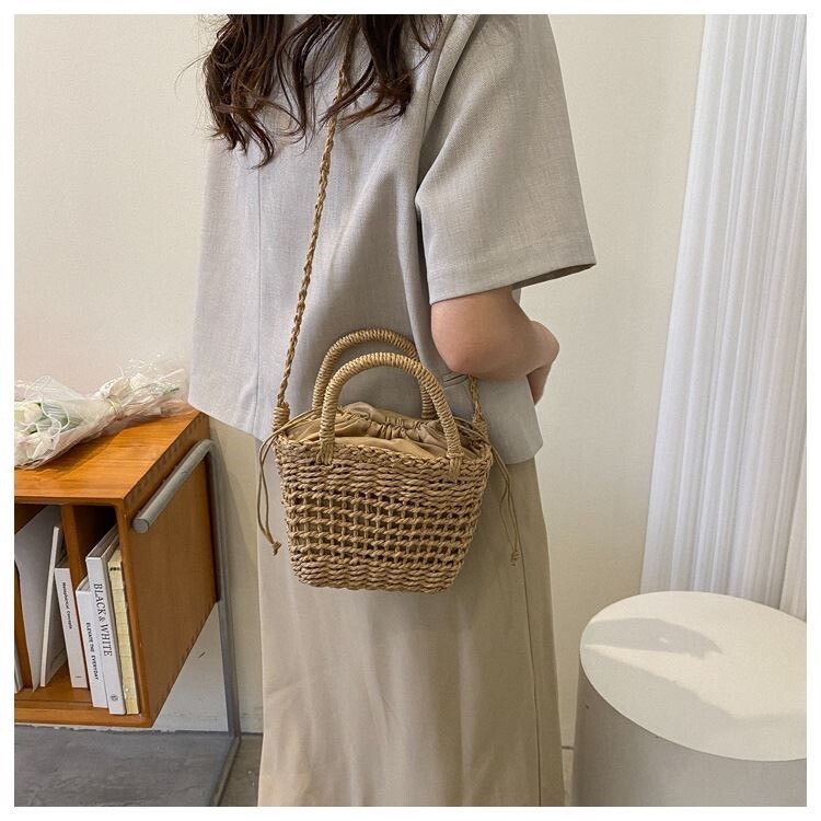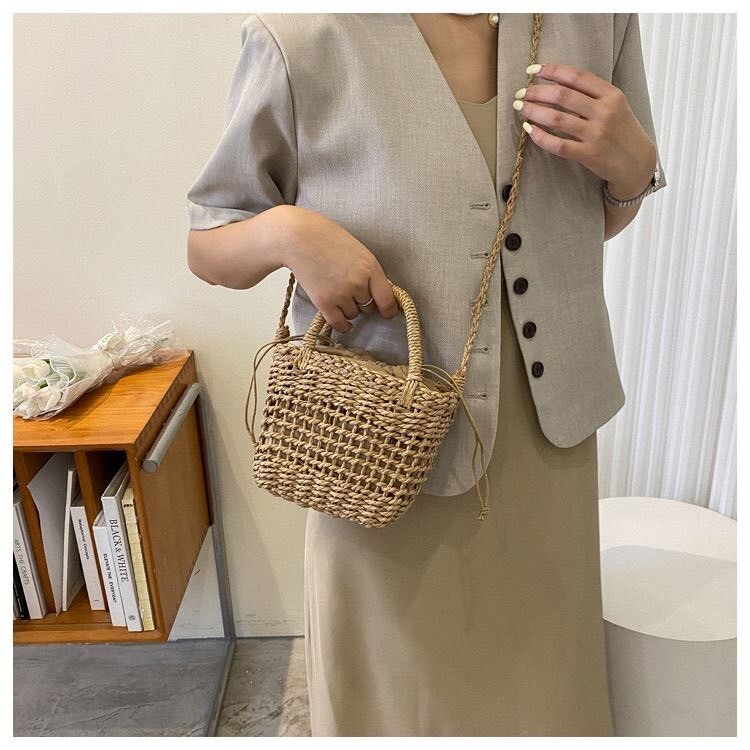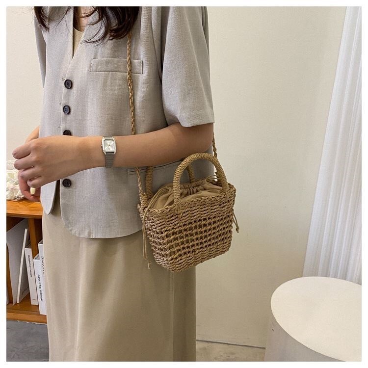 法式編織沙灘包 杏/棕