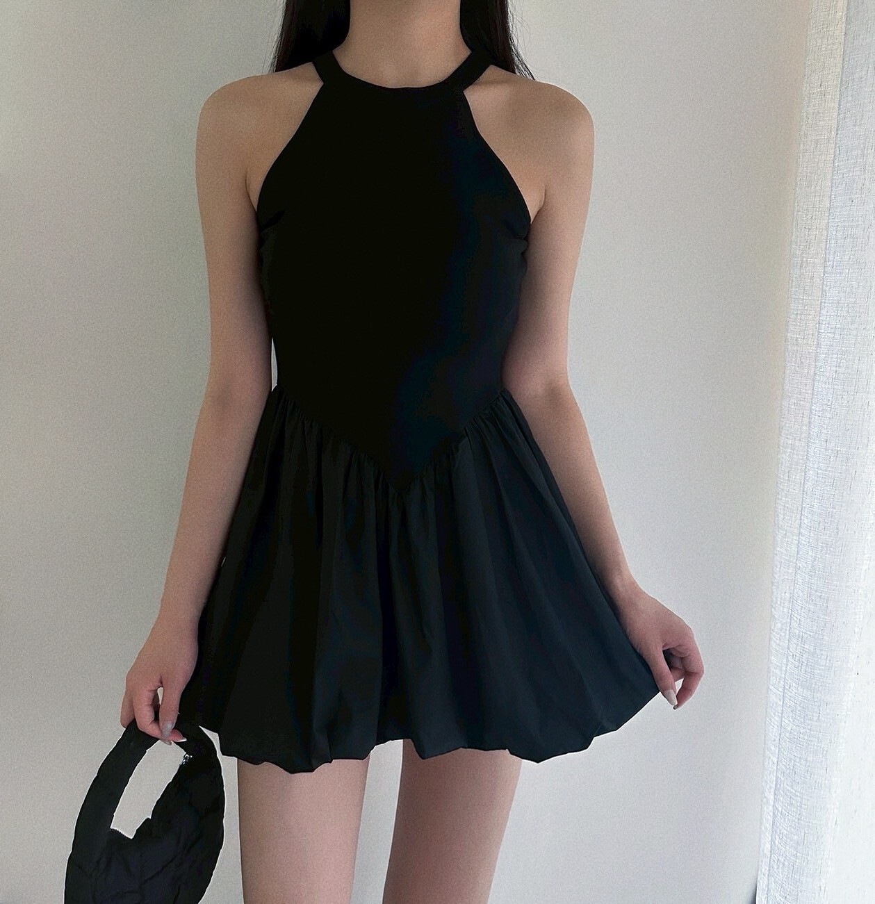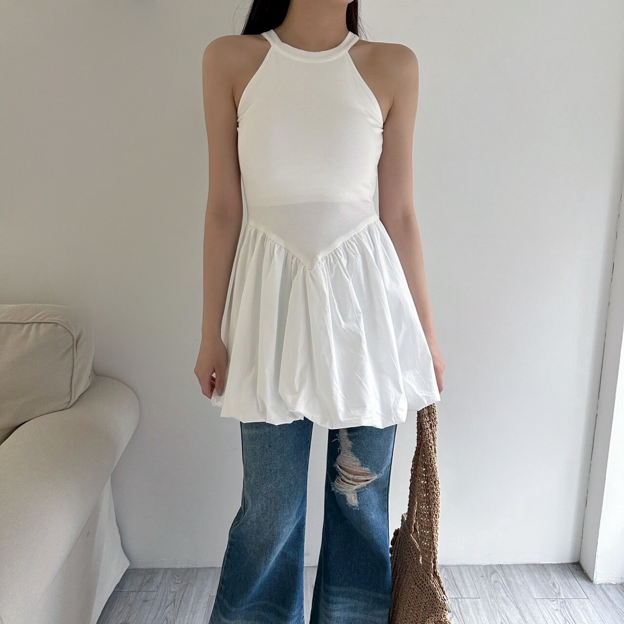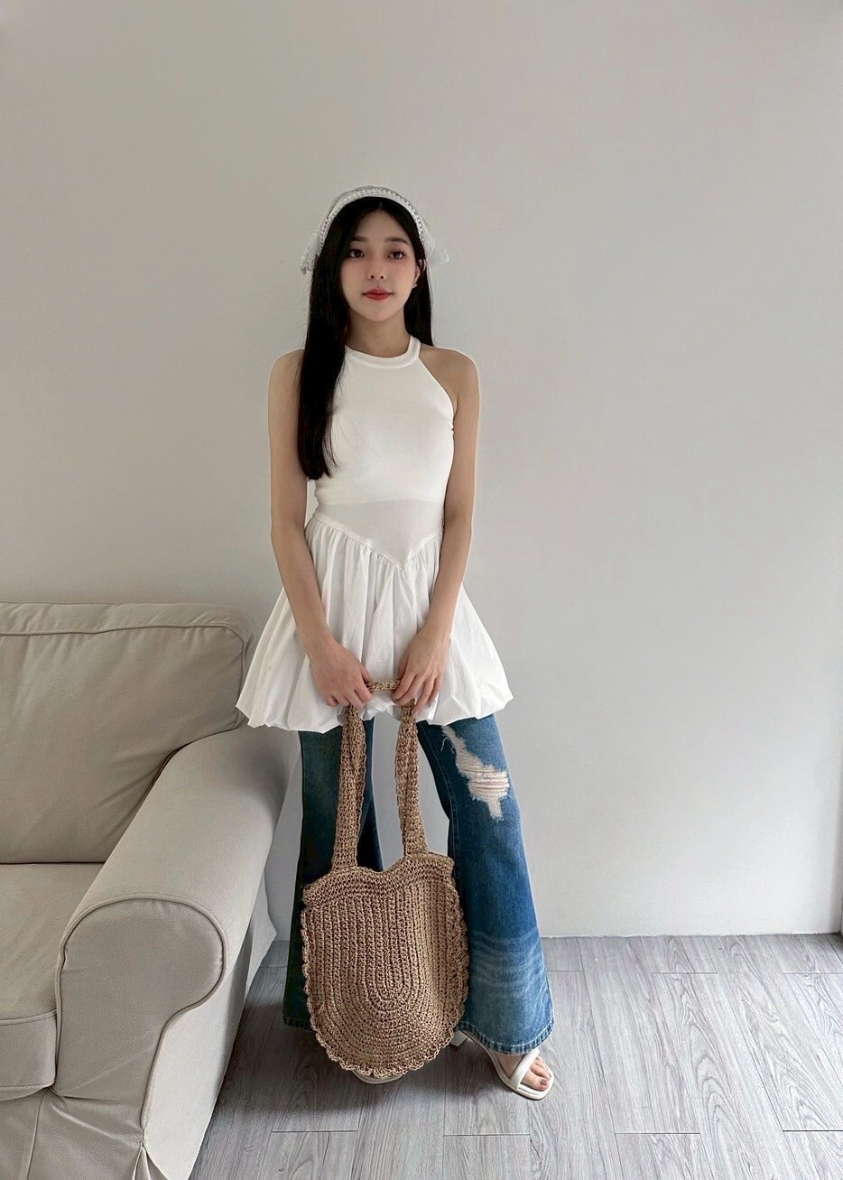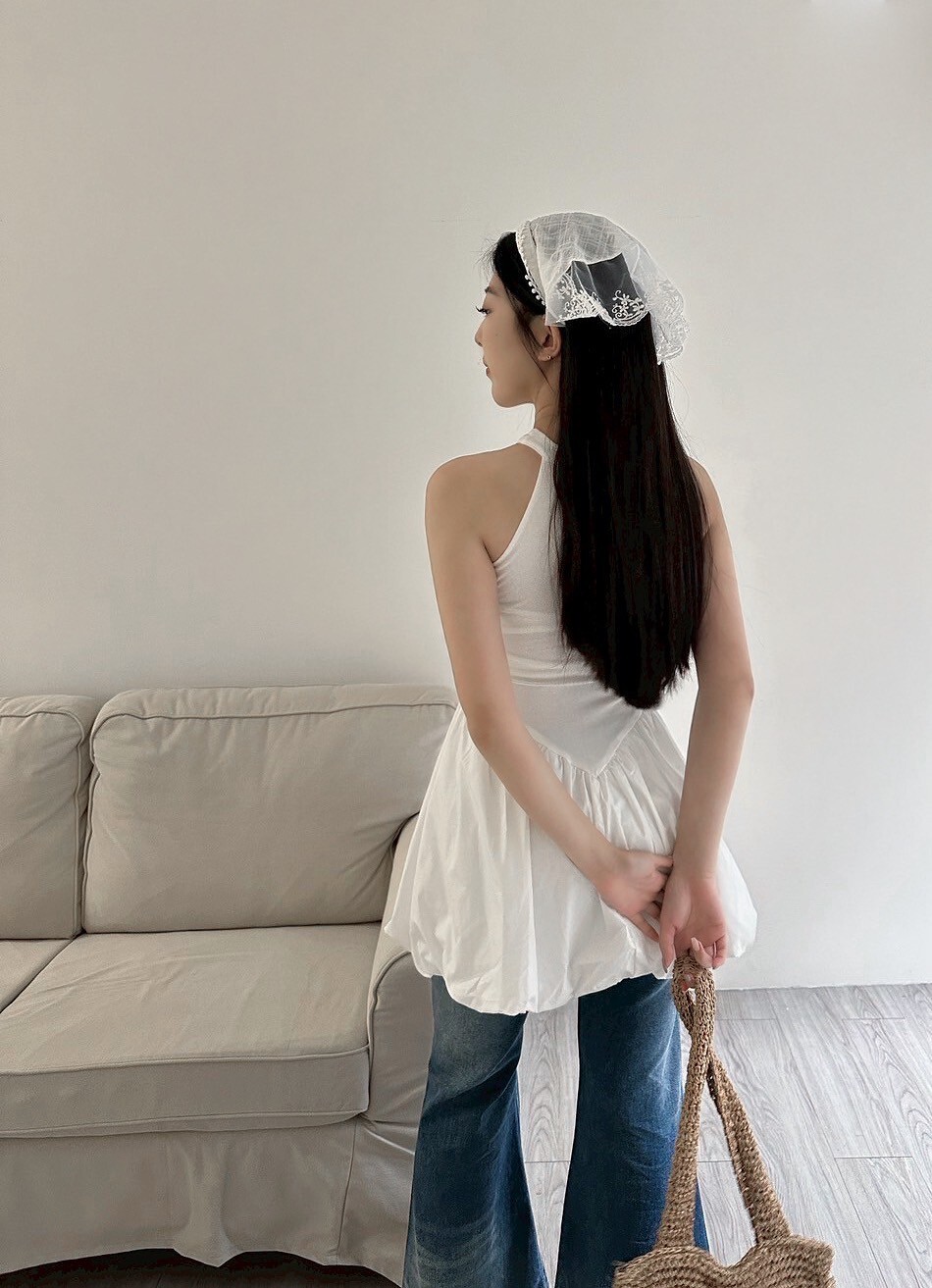 削肩合身上半身搭配澎澎裙