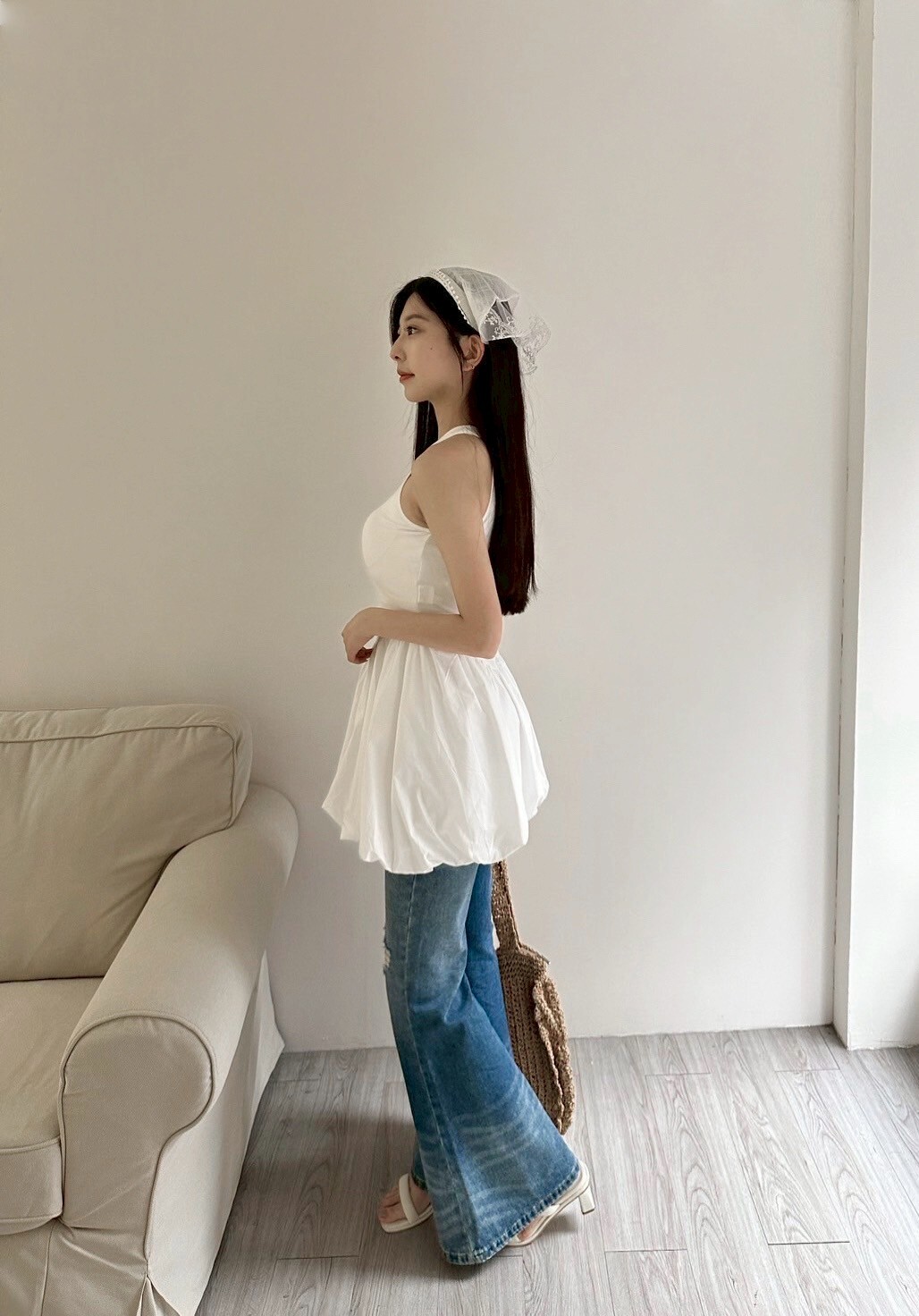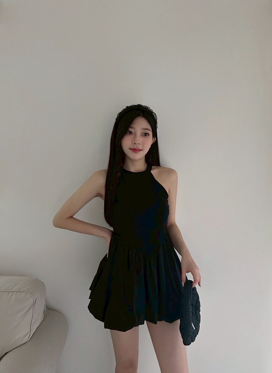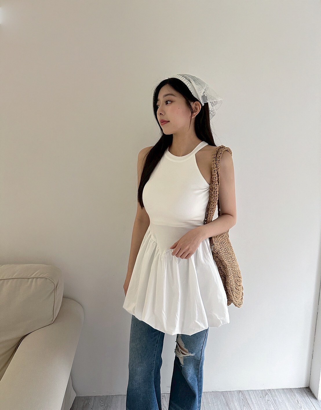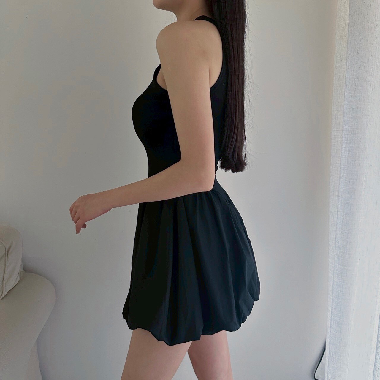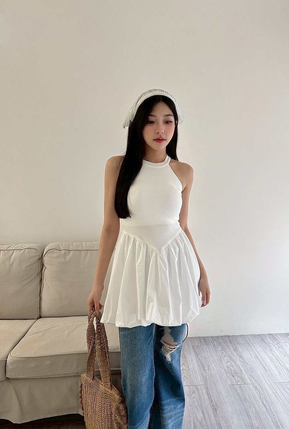 削肩合身上半身搭配澎澎裙