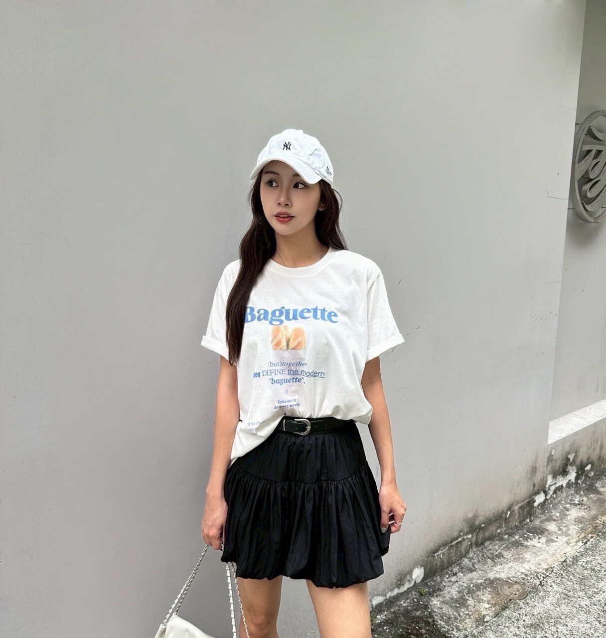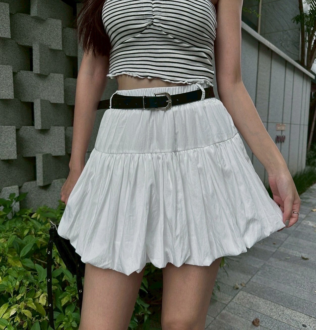 官網限定優惠!皮帶澎澎短裙 黑/白