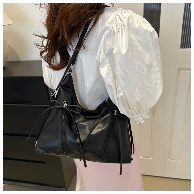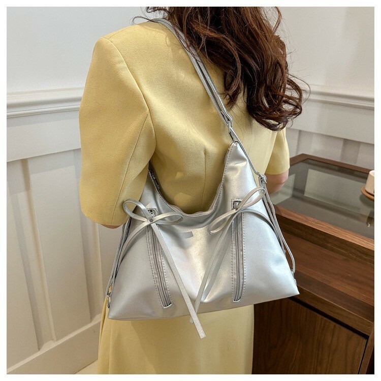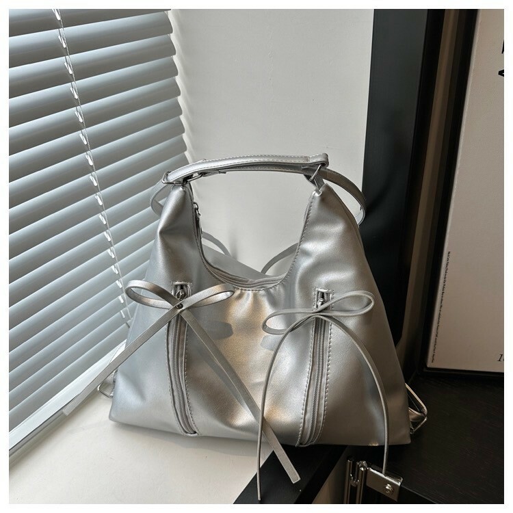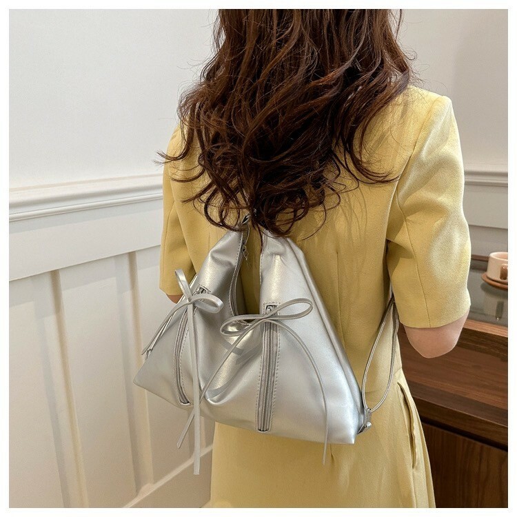 蝴蝶結後背肩背兩用包 銀/黑