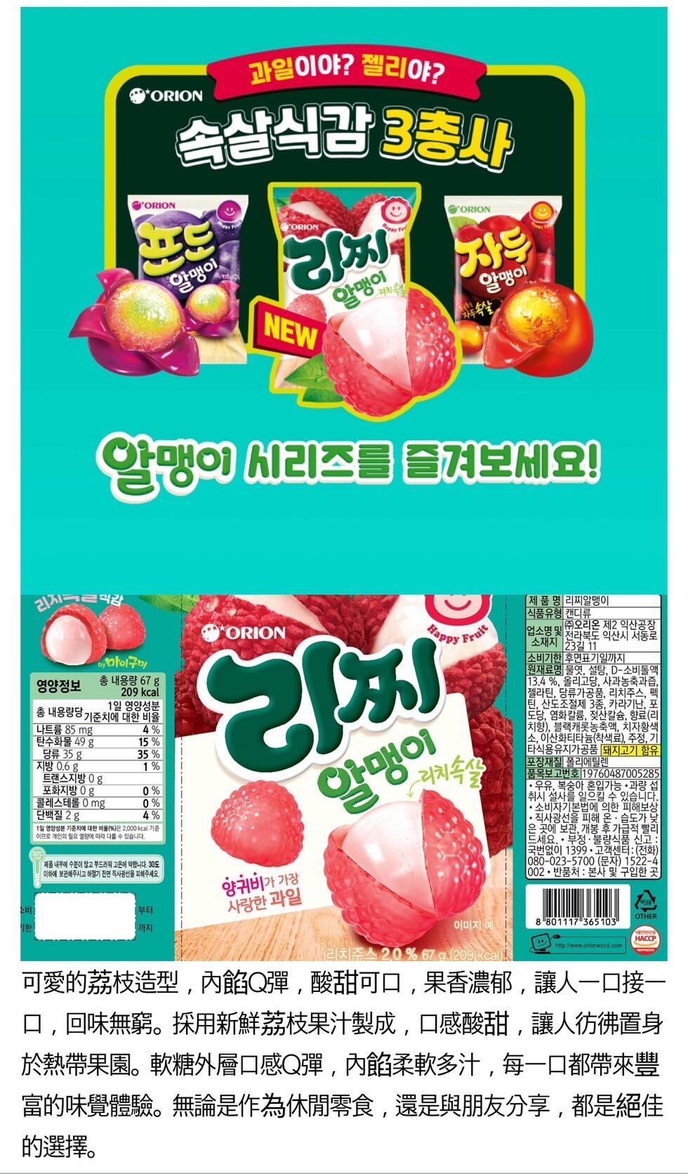 韓國好麗友果肉感軟糖 葡萄/荔枝