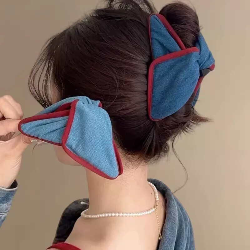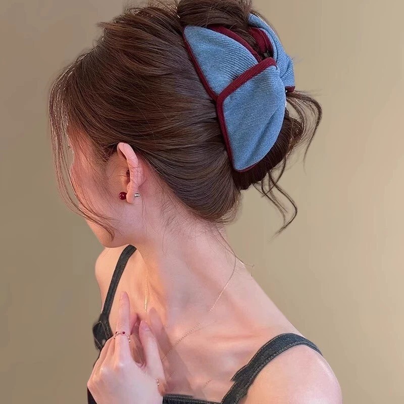 韓國復古牛仔抓夾 深藍/淺藍