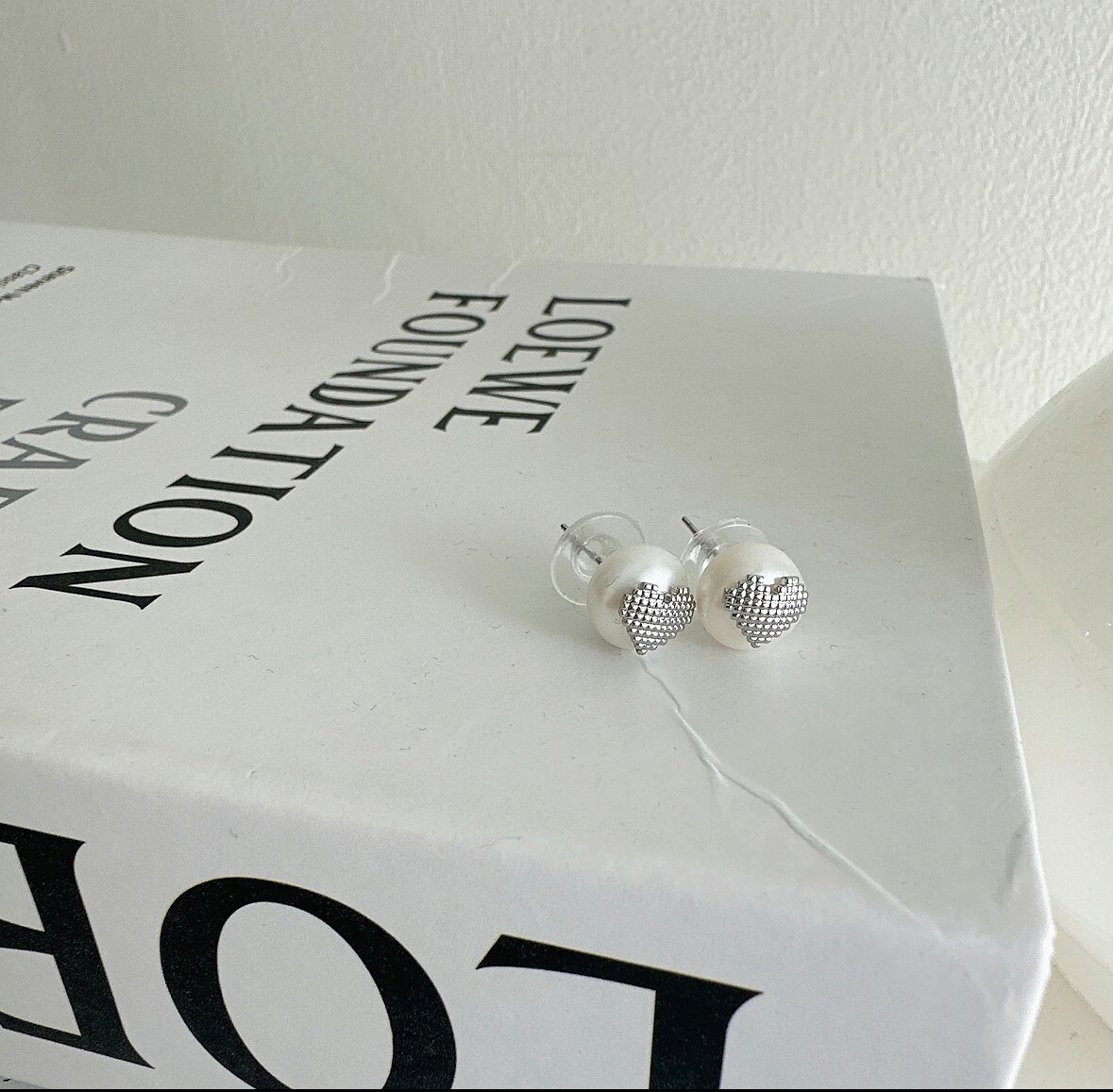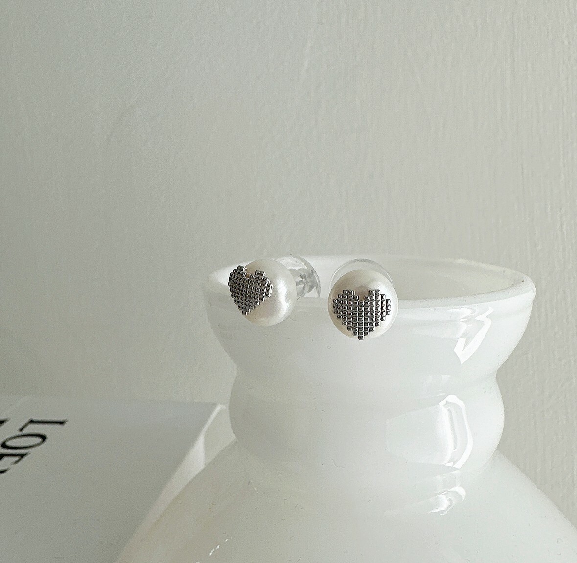 韓國珍珠金屬愛心耳環