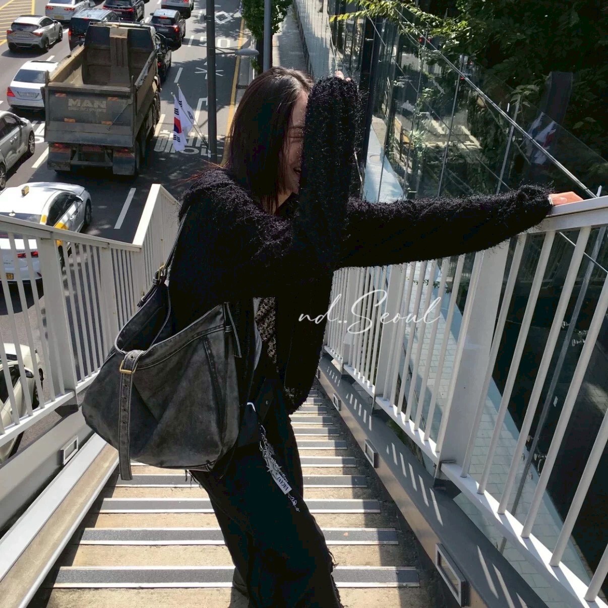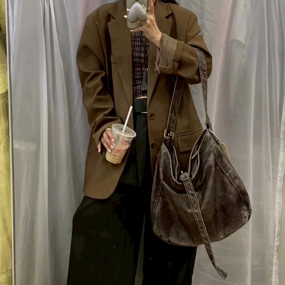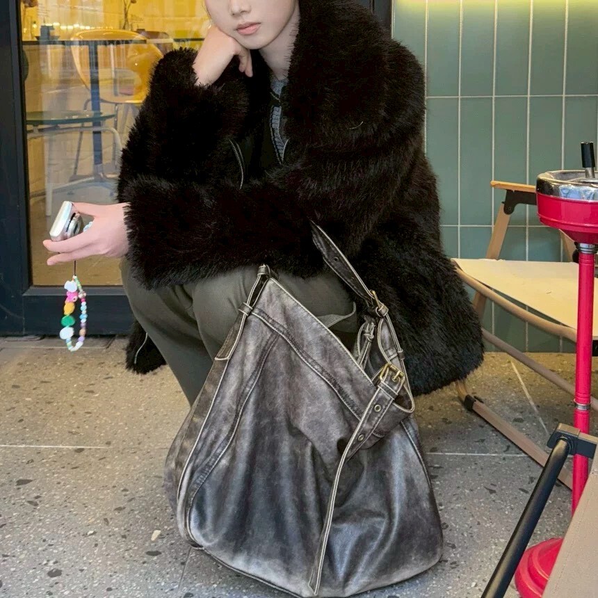 韓版仿舊單寧托特包 黑/銀灰