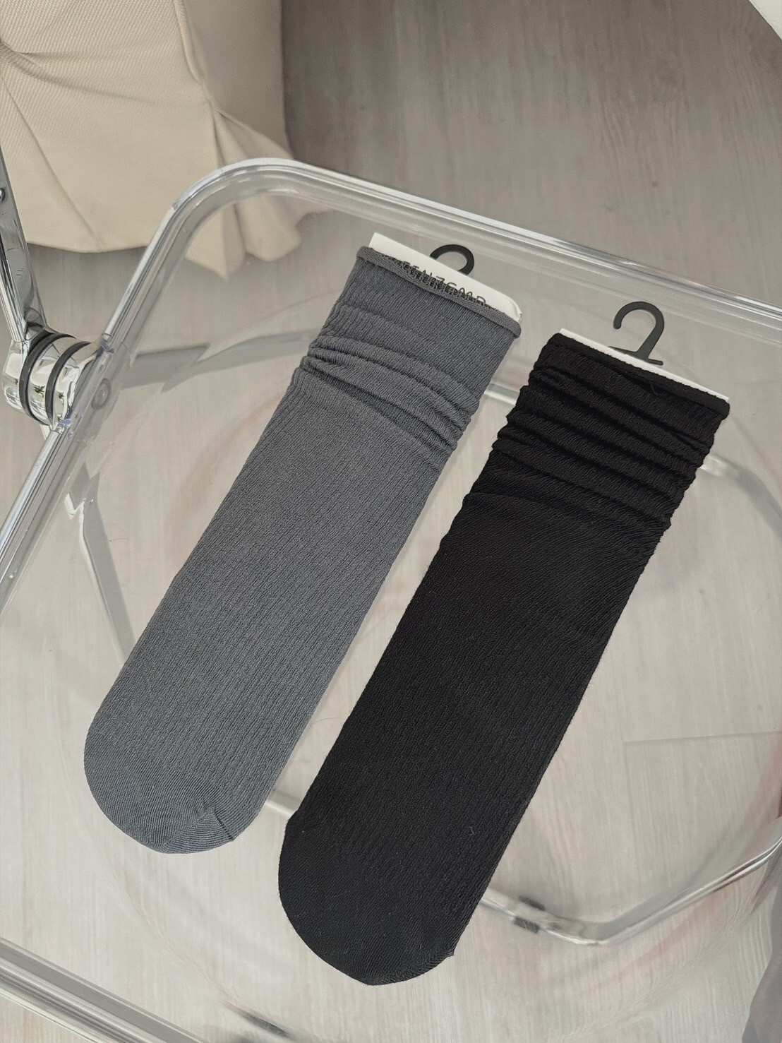 高質感坑條堆堆襪 黑/深灰